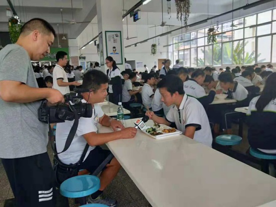 2018年9月11日株洲新闻频道来株洲市第一中学食堂进行采访